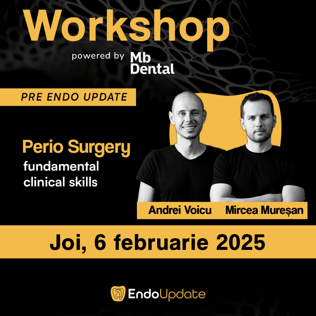 « All Events Workshop – Andrei Voicu & Mircea Mureșan February 6 @ 9:00 am - 5:00 pm 2400RON Perio Surgery – fundamental clinical skills Uneori chirurgia parodontala poate fi […]